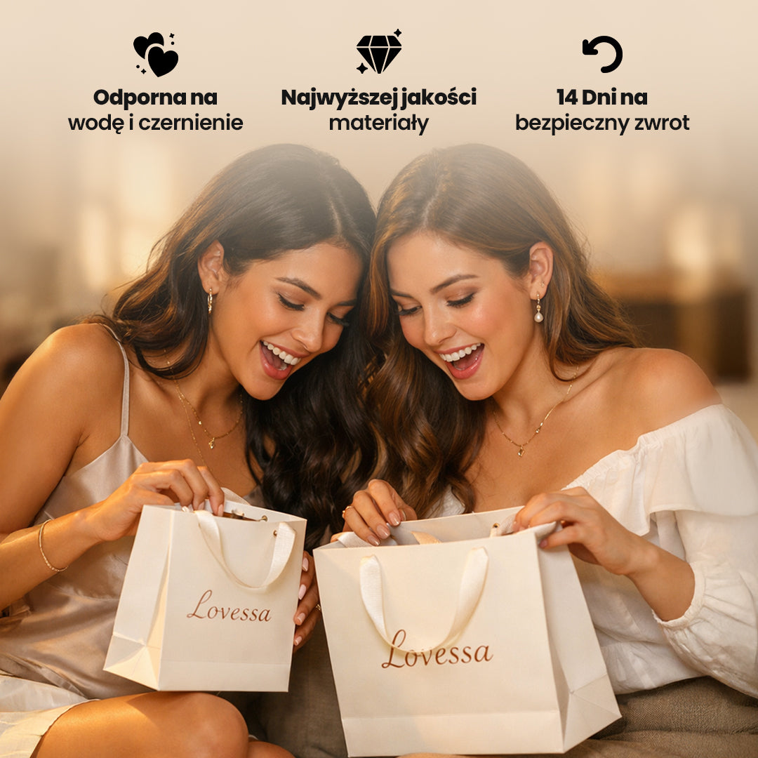 Naszyjniki Lovessa posiadają regulowany łańcuszek, który pozwala dopasować długość do dekoltu, stylizacji i indywidualnych preferencji. Komfort i elegancja w każdym detalu.