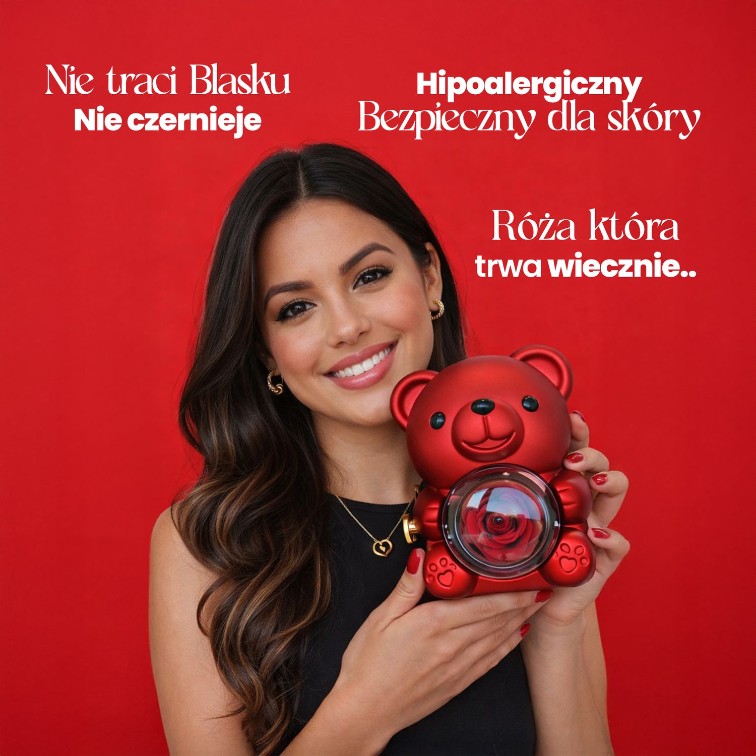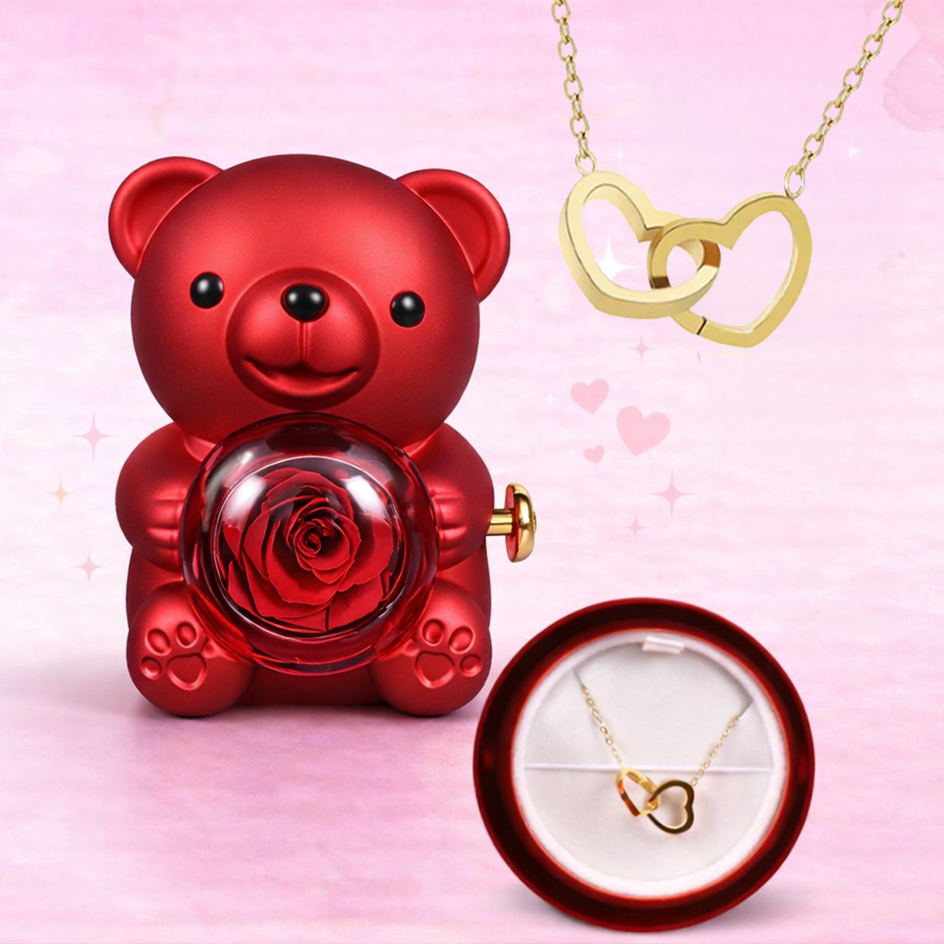 Miś Wieczna Róża + Naszyjnik serca